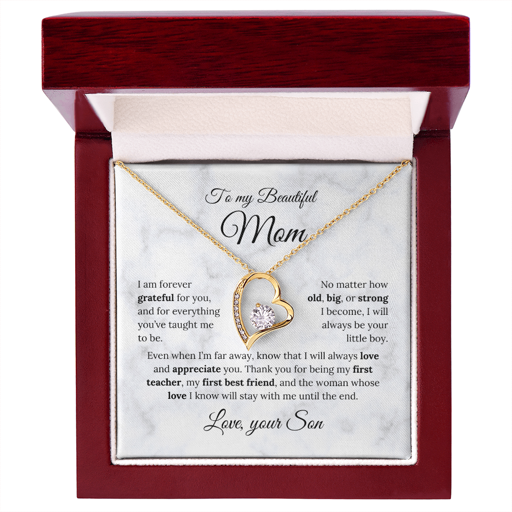 I am forever grateful for you, and for everything you’ve taught me to be. No matter how old, big, or strong I become, I will always be your little boy. Even when I’m far away, know that I will always love and appreciate you. Thank you for being my first teacher, my first best friend, and the woman whose love I know will stay with me until the end.